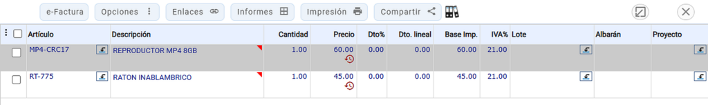 Ampliar campo de descripción: en los documentos de compra-venta se puede ampliar, en cada línea de detalles, el campo Descripción para escribir o ver información en una ventana más grande y visible. |
